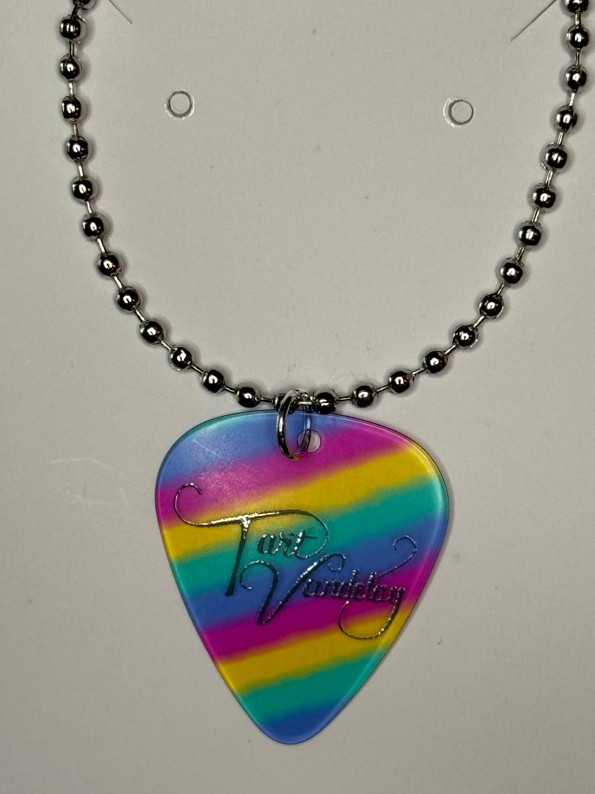 Guitar Pick Necklace - Rainbow Silver Ball Chain